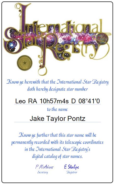 | Star Name | Jake Taylor Pontz |